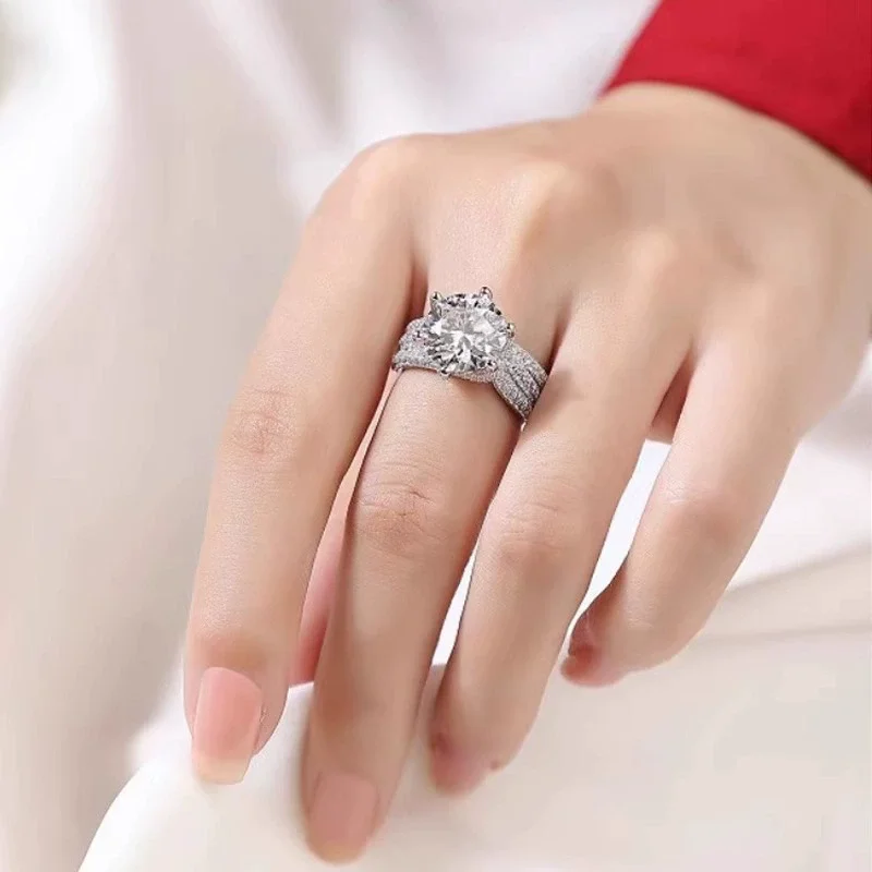 Trois - 3-Carats Round cut Pavé Moissanite Ring